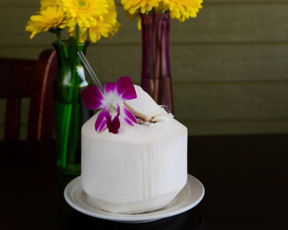 Coconut milk soup, lemongrass, green onions, and mushrooms