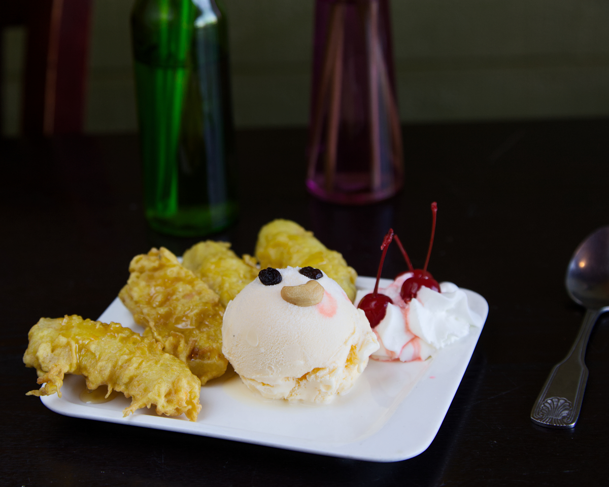 Fried shrimps wrapped with egg rolls skins served with sweet sauce