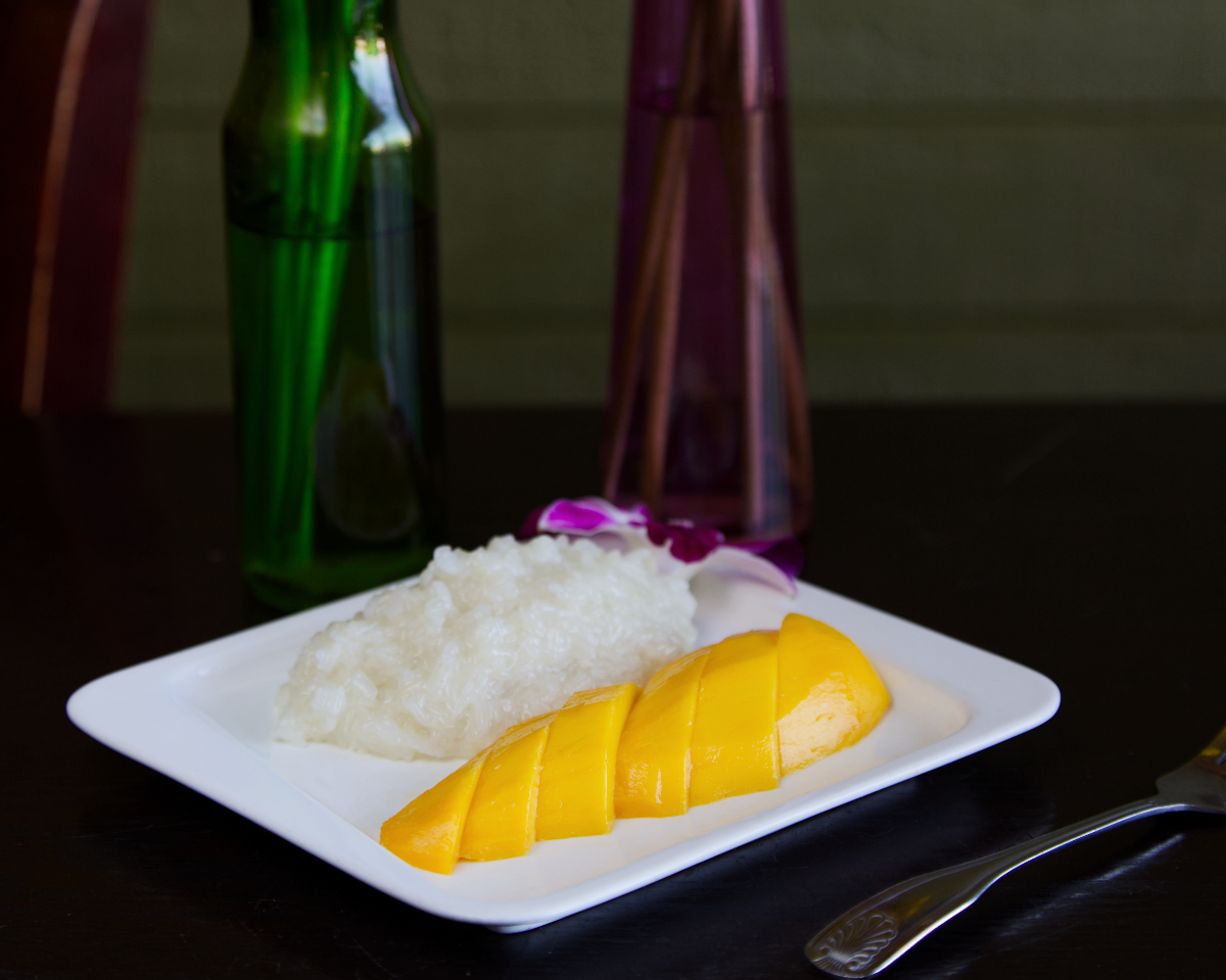 Fresh mangoes simmered in yellow curry base, brightened with zucchini, bell peppers onions and carrots