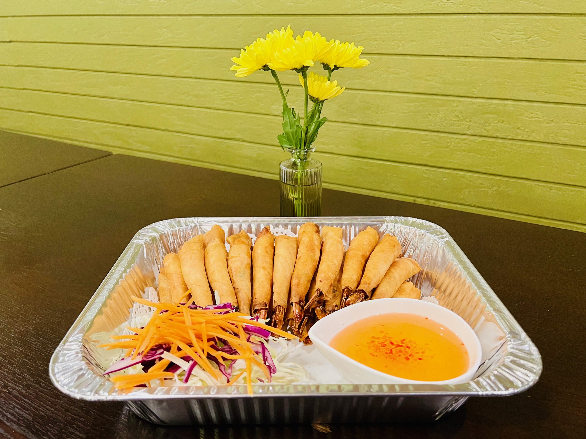 Deep-fried rolls stuffed with bean threads, celery, cabbage, carrot, corn, and taro