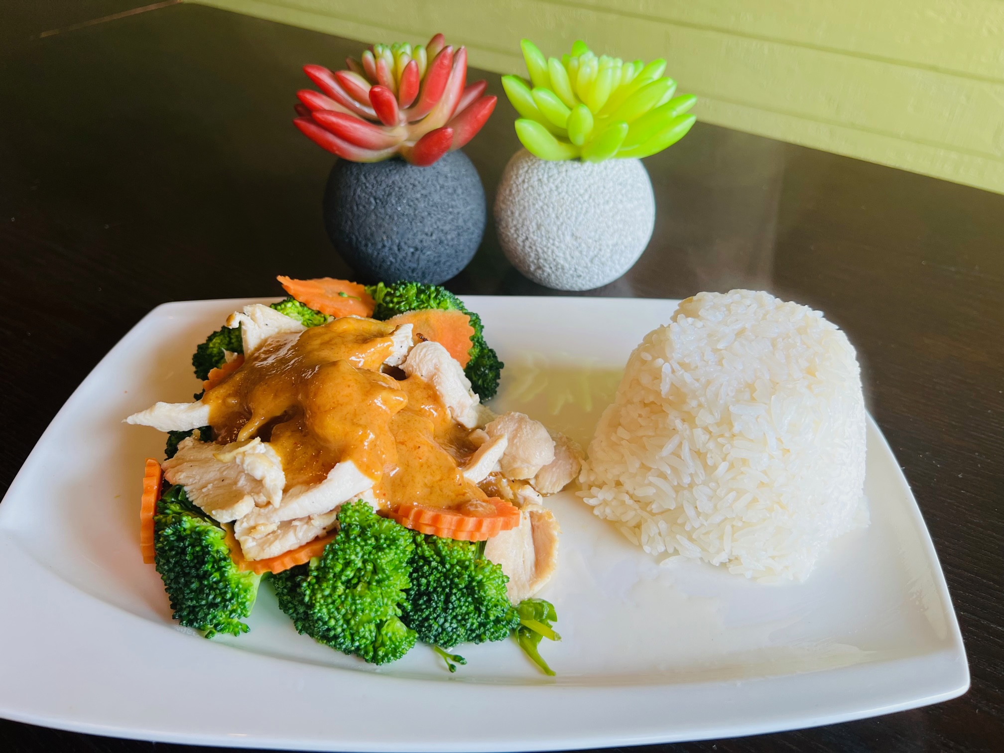 (Serve with white rice, or upgrade $0.50 for brown rice, or $1.00 for steam vegetables)