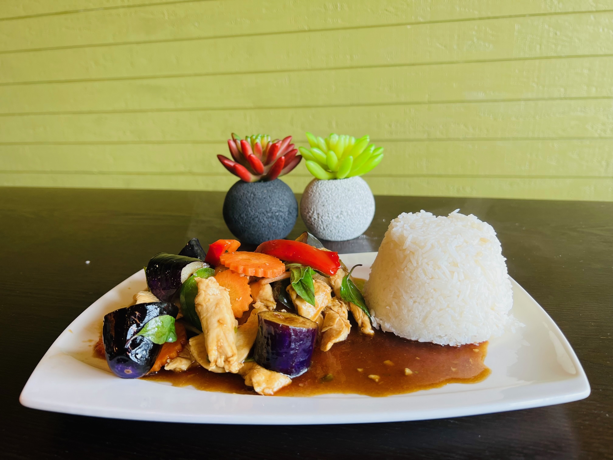 (Serve with white rice, or upgrade $0.50 for brown rice, or $1.00 for steam vegetables)